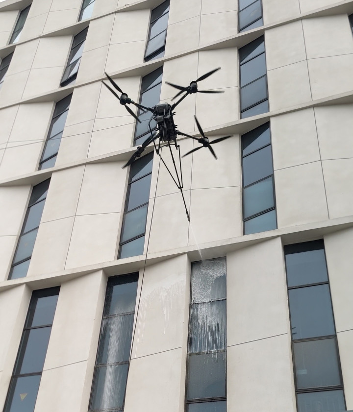 过去,这项工作主要依靠“蜘蛛人”——他们悬坐在与绳索相连的木板上,完成高空清洗。但这种传统作业方式,面临着高风险、高成本与劳动力短缺“三座大山”。如今,一种替代方案正悄然兴起:让无人机上场。