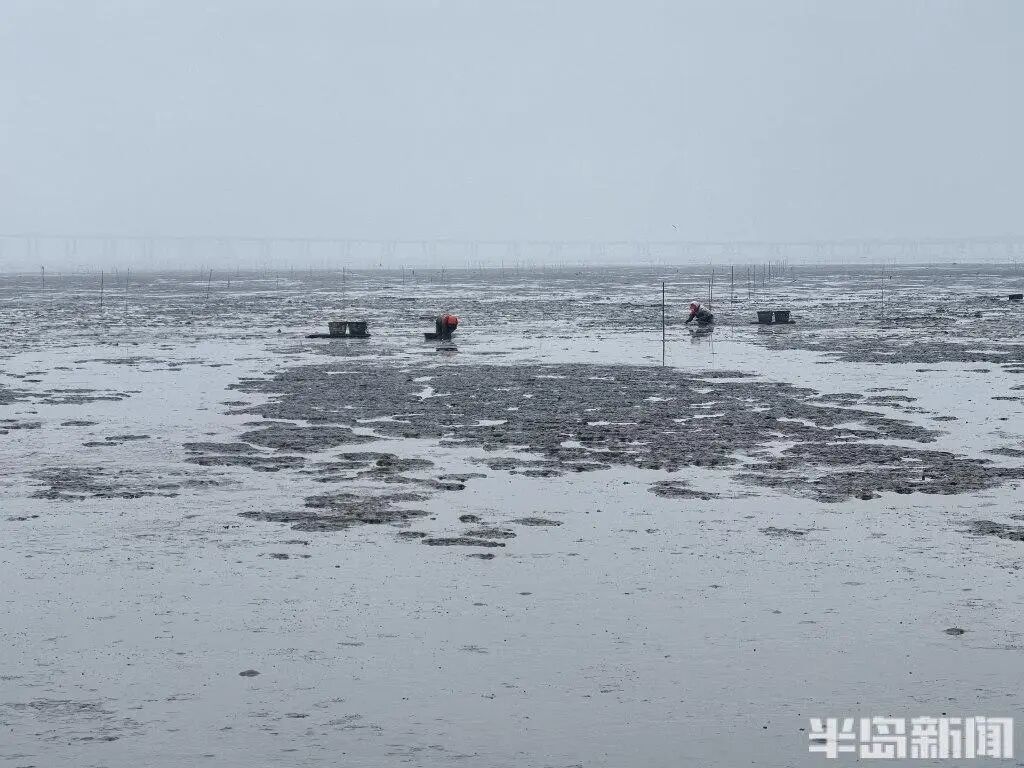 3月1日上午9时许,记者来到青岛胶州生态大道,旁边胶州湾有大片滩涂,是当地渔民养殖蛏子的海域。这种蛏子叫缢蛏,跟竹节蛏同属一个科,但是短而宽,当地人也称为蚬子。在青岛的胶州湾以及丁字湾,有大片养殖区域,也有大量野生。