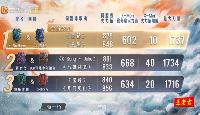 在第二轮舞台公演中,排在倒数的三个团是:新时代、快乐老咖、TOP登陆少年,第三轮舞台公演,排在倒数的三个团是:TOP登陆少年、快乐老咖、INTO万,而结合两轮舞台公演总成绩,进入终极对决的是TOP登陆少年、快乐老咖、INTO万。